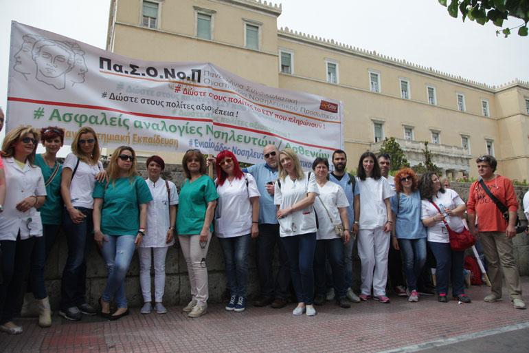 Φωτογραφίες από τη σημερινή διαμαρτυρία νοσηλευτών στη Βουλή και το υπουργείο Υγείας: