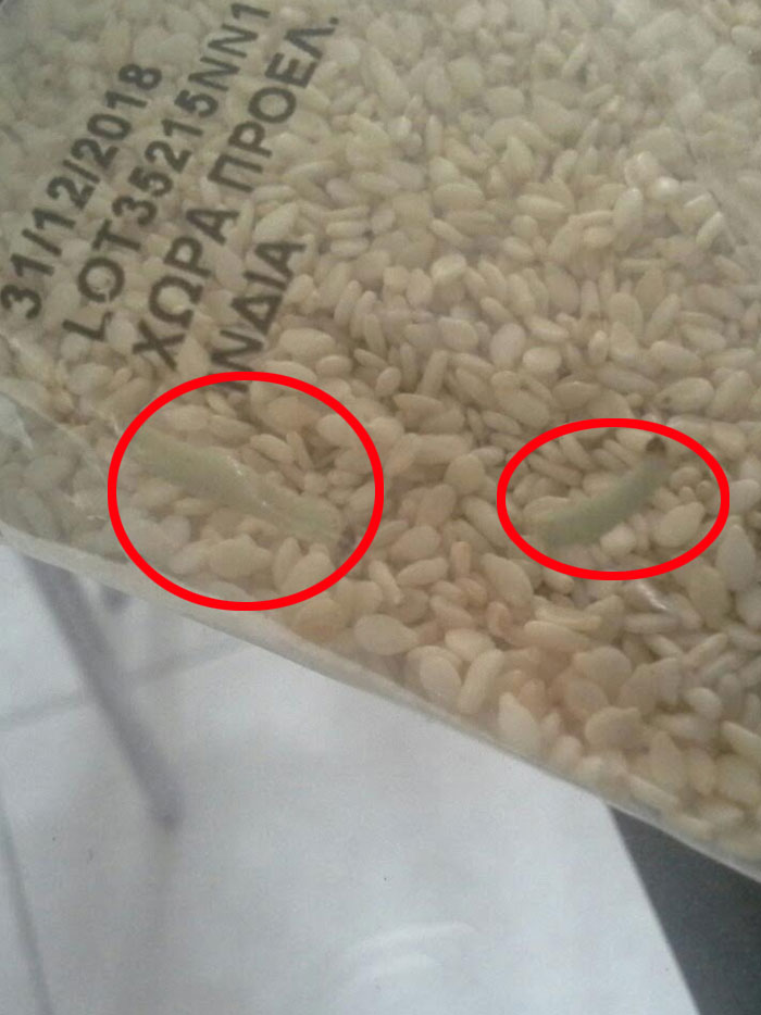 Τα περίεργα ξεκίνησαν όταν φτάνοντας σπίτι του, παρατήρησε ότι εντός της συσκευασίας υπήρχαν δύο… κάμπιες. Αμέσως επικοινώνησε με τη διοίκηση της εταιρείας «Μασούτης Α.Ε.» ώστε να τους ενημερώσει για τα καθέκαστα. Αμέσως οι αρμόδιοι υπάλληλοι του τόνισαν ότι η εταιρεία δεν φέρει καμιά ευθύνη, και τον παρέπεμψαν στην εταιρεία συσκευασίας του προϊόντος, την «Μπαχαρικά ΚΑΓΙΑ Α.Β.Ε.».