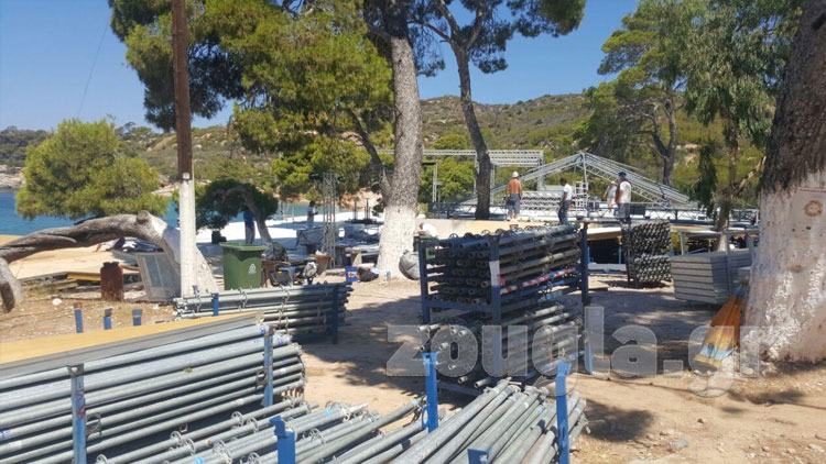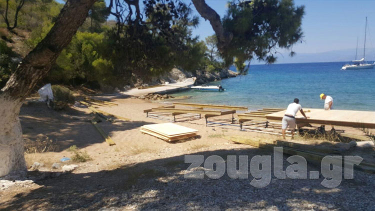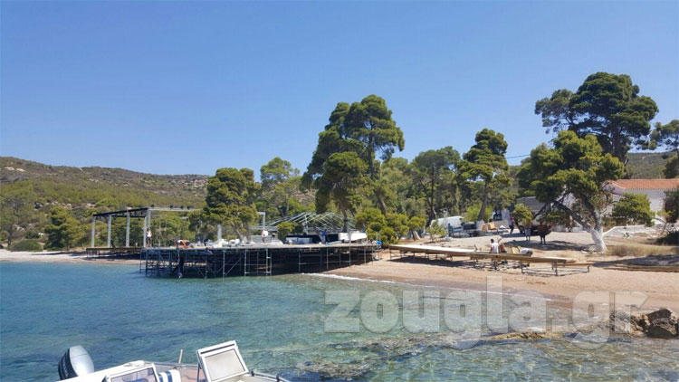 Αναγνώστης του zougla.gr έστειλε φωτογραφίες από την παραλία της Αγίας Παρασκευής στις Σπέτσες καταγγέλλοντας πως ιδιώτης απέκλεισε ολόκληρη την παραλία στήνοντας εγκαταστάσεις κυριολεκτικά πάνω στο νερό, για το πάρτι ενός γάμου.