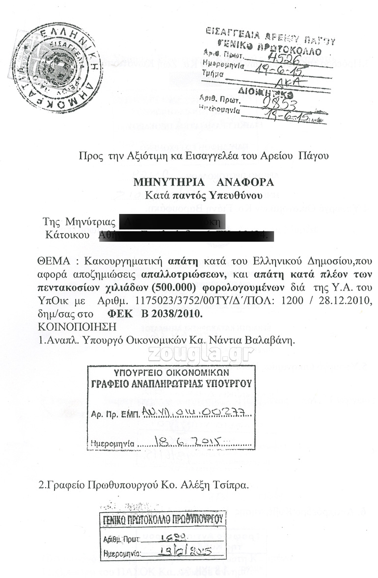 Διαβάστε τη μήνυση που υποβλήθηκε στην Εισαγγελία του Αρείου Πάγου: