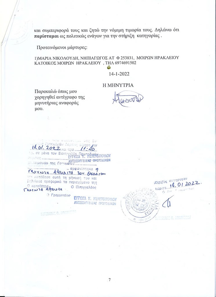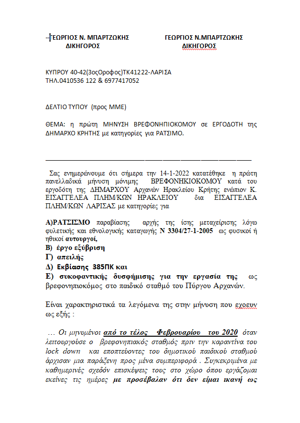 Για το ίδιο θέμα μίλησε στην ηλεκτρονική μας εφημερίδα και ο δικηγόρος της καταγγέλλουσας Γιώργος Μπαρτζώκης.