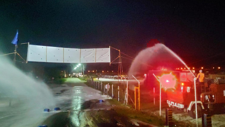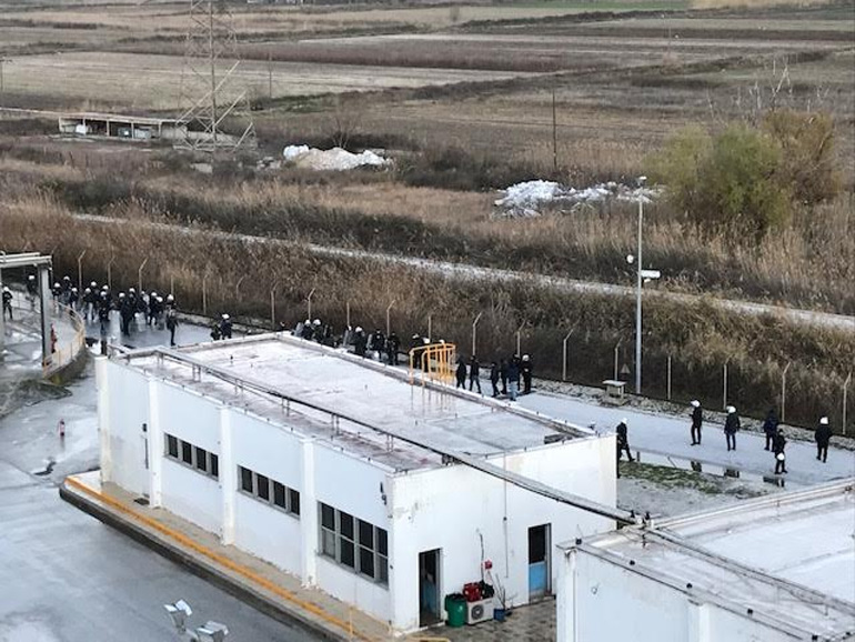 Καλούμε την ηγεσία του υπουργείου Προστασίας του Πολίτη να δώσει εντολή απομάκρυνσης των αστυνομικών δυνάμεων. Ένα εργοστάσιο πετρελαίου δεν ενδείκνυται για τέτοιου τύπου «πολεμικά» σκηνικά, ειδικά μετά την ανατίναξη μετασχηματιστή υψηλής τάσης από οβίδα κρότου λάμψης που εκτοξεύτηκε από άνδρες των ΜΑΤ. Προειδοποιούμε ότι δεν πρέπει να υπάρξει ούτε ένας τραυματισμός εργαζομένου. Η ευθύνη θα βαρύνει εξ ολοκλήρου τη διοίκηση της εταιρείας και την ΕΛ.ΑΣ., για το σκηνικό που στήθηκε σήμερα τα ξημερώματα στις εγκαταστάσεις ενός εργοστασίου υψηλής επικινδυνότητας».