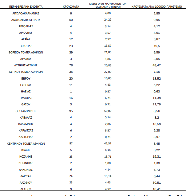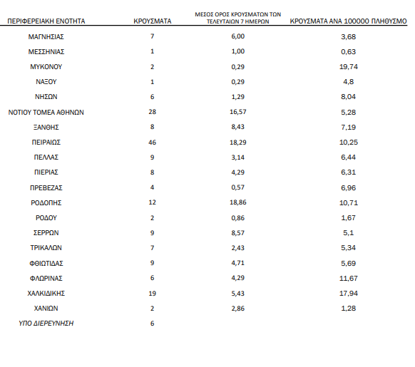 Σημ.2: αναγράφονται μόνο οι ΠΕ στις οποίες έχουν καταγραφεί κρούσματα κατά τη σημερινή αναφορά