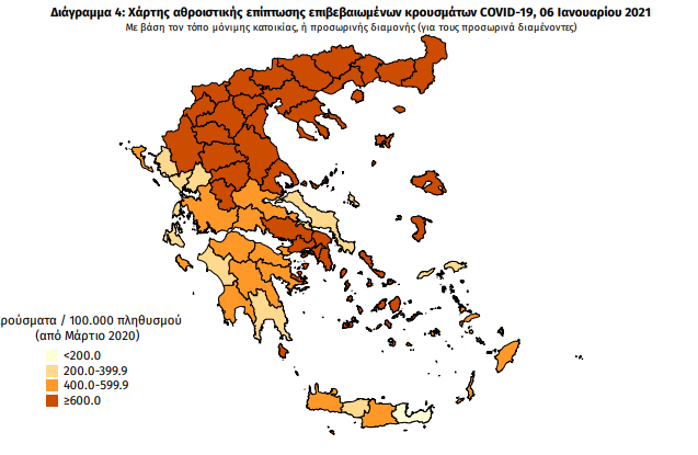 Αναλυτικά η ανακοίνωση του ΕΟΔΥ την Τετάρτη 6 Ιανουαρίου: