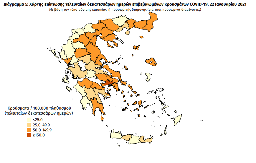 Ημερήσια έκθεση επιδημιολογικής επιτήρησης λοίμωξης από το νέο κορωνοϊό (COVID-19) – Δεδομένα έως 22/01/2021
