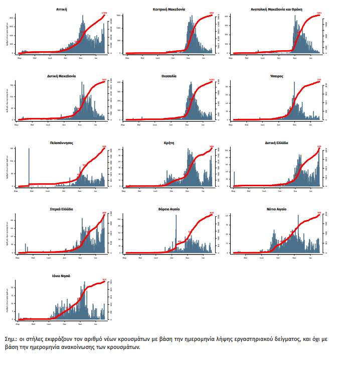 Σημ.2: αναγράφονται μόνο οι ΠΕ στις οποίες έχουν καταγραφεί κρούσματα κατά τη σημερινή αναφορά