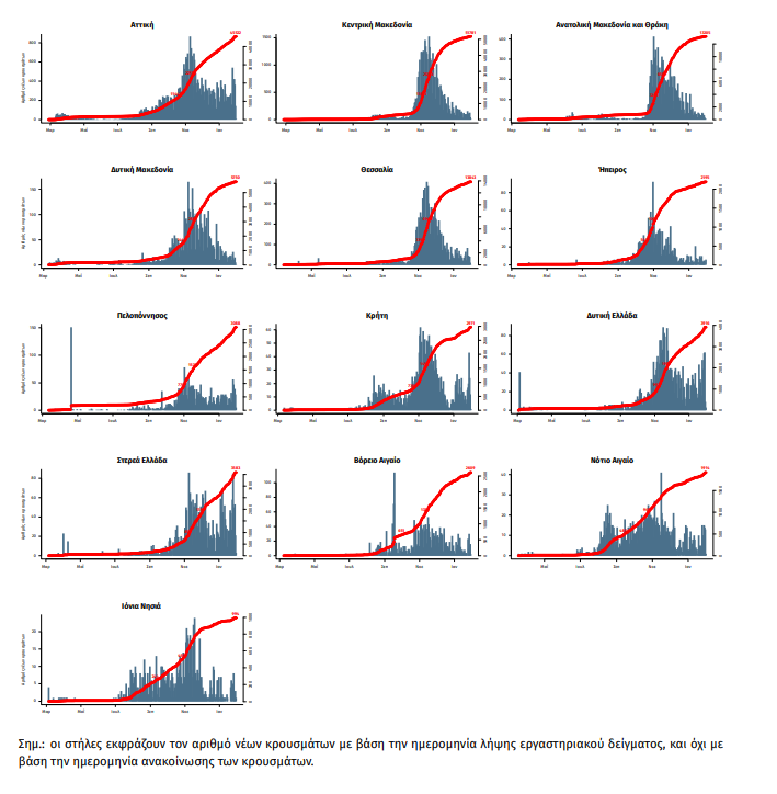 Σημ.2: αναγράφονται μόνο οι ΠΕ στις οποίες έχουν καταγραφεί κρούσματα κατά τη σημερινή αναφορά