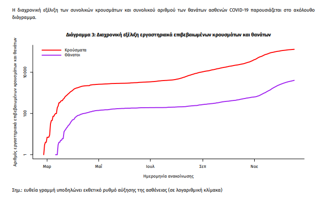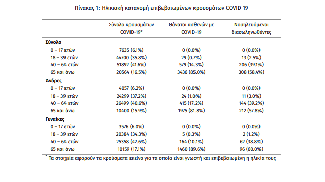 Τέλος, έχουμε 96 ακόμα καταγεγραμμένους θανάτους και 4044 θανάτους συνολικά στη χώρα. 1631 (40.3%) γυναίκες και οι υπόλοιποι άνδρες. Η διάμεση ηλικία των θανόντων συμπολιτών μας ήταν τα 79 έτη και το 95.6% είχε κάποιο υποκείμενο νόσημα ή/και ηλικία 70 ετών και άνω.