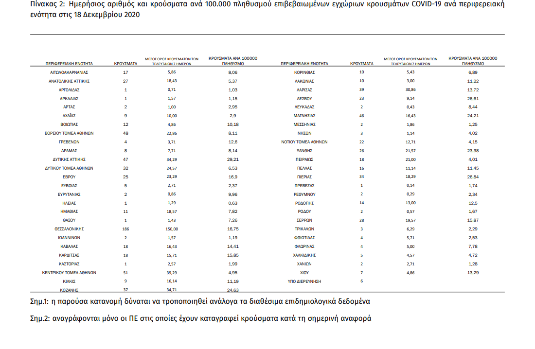 Ημερήσια έκθεση επιδημιολογικής επιτήρησης λοίμωξης από το νέο κορωνοϊό (COVID-19) – Δεδομένα έως 18/12/2020