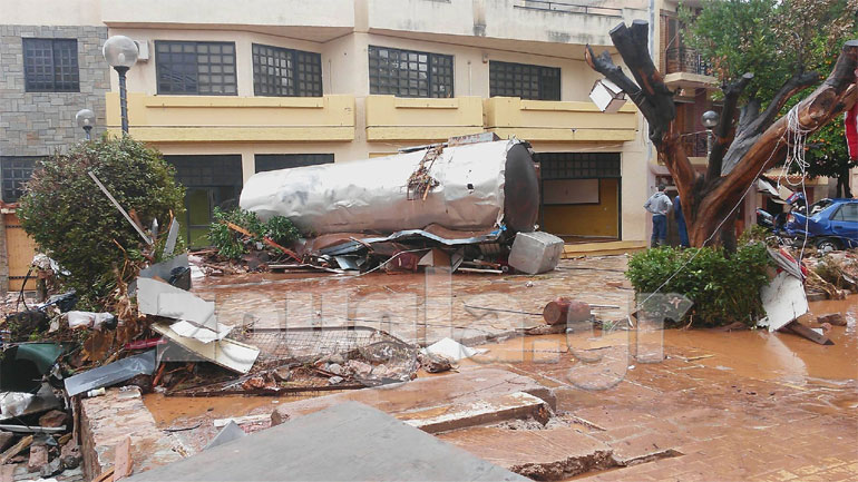 Τα ορμητικά νερά έκοψαν δρόμους, γκρέμισαν μάντρες σπιτιών, παρέσυραν αυτοκίνητα και πλημμύρισαν σπίτια και καταστήματα.