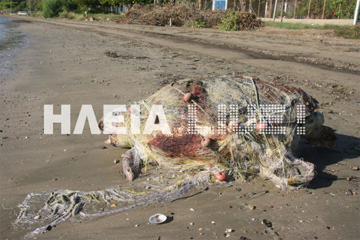 Άλλη μια νεκρή χελώνα caretta – carreta ξέβρασε η θάλασσα στην περιοχή του Κατακόλου και συγκεκριμένα στο Ντόζη. Και ήταν φανερός ο τρόπος που βρήκε το θάνατό, αφού ήταν μπλεγμένη σε δίχτυα κάποιου ψαρά, τα οποία δεν μπόρεσε να αποφύγει.