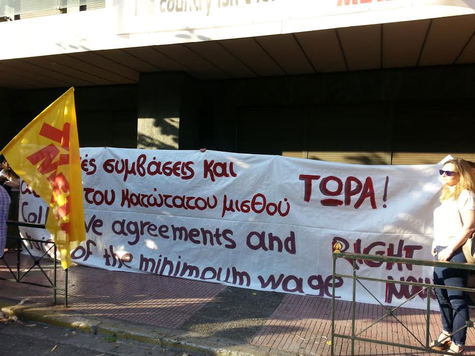«Αιφνιδιαστικά, σε αποκλεισμό και κατάληψη των γραφείων της Ευρωπαϊκής Επιτροπής στην Αθήνα, επί της οδού Βασιλίσσης Σοφίας, έχουν προχωρήσει από τις 7 και μισή οι συνδικαλιστές του ΜΕΤΑ, σε μια ένδειξη διαμαρτυρίας για τις πολιτικές της λιτότητας και των μνημονίων αλλά και για τον εμπαιγμό και τους εκβιασμούς των τοκογλύφων – δανειστών απέναντι στη χώρα μας, το λαό και τους εργαζομένους.