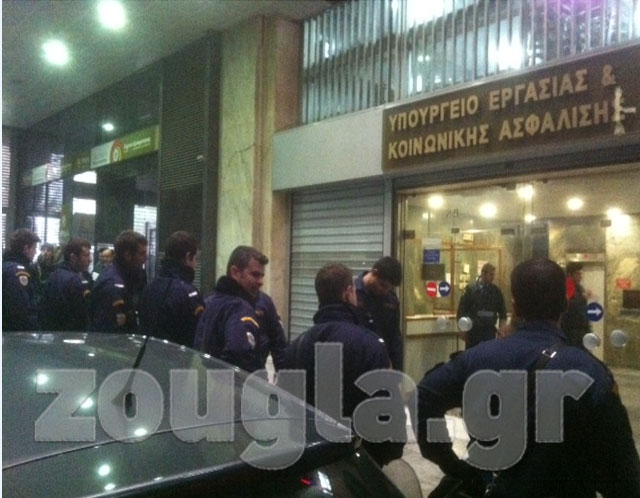 Επεισοδιακή ήταν η πρωινή κατάληψη στο γραφείο του υπουργού Εργασίας, επί της οδού Σταδίου 29, που πραγματοποίησαν μέλη του ΠΑΜΕ, με την αστυνομία να επιδεικνύει υπέρμετρο ζήλο στην απώθηση των διαδηλωτών.