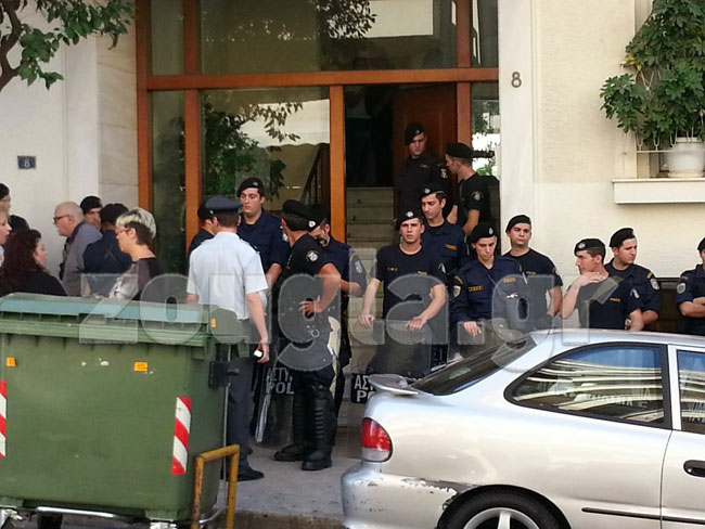 Οι διαδηλωτές ανέβηκαν στον τελευταίο όροφο του κτηρίου όπου στεγάζεται το πολιτικό γραφείο του υπουργού, επί της οδού Ευφρονίου 8.