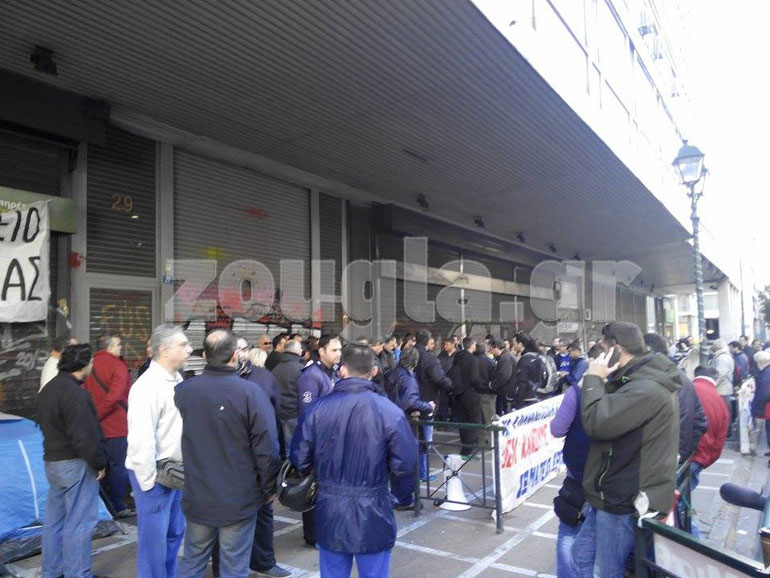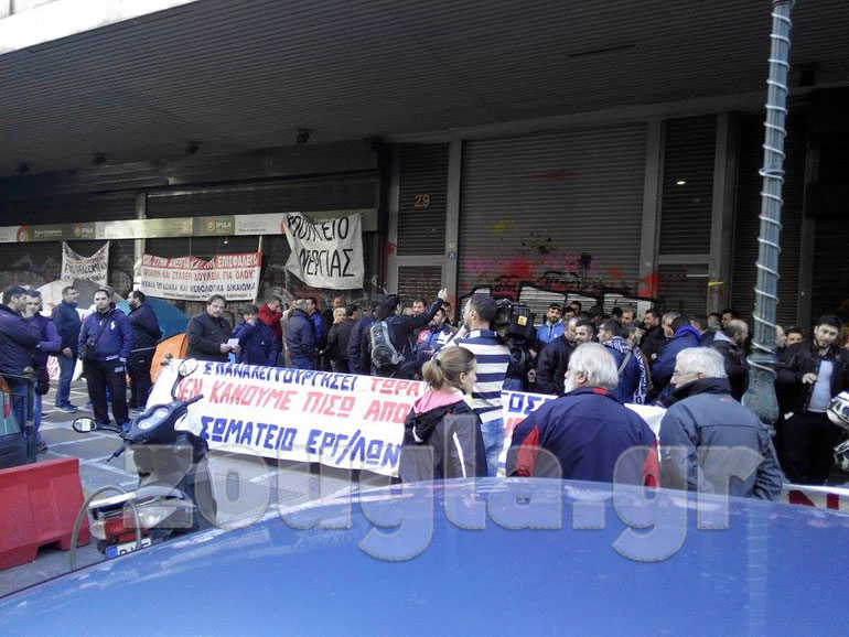 Παράλληλα, έξω από το κτήριο του ΟΑΕΔ, συγκεντρώθηκαν και οι απολυμένοι της Αθηναϊκής Χαρτοποιίας, διεκδικώντας την επαναλειτουργία του εργοστασίου της Softex και την ανάκληση των απολύσεών τους.