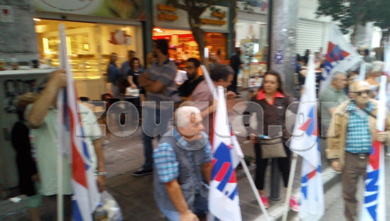Ορισμένα από τα μέλη του ΠΑΜΕ κρέμασαν ένα τεράστιο πανό στην ταράτσα του κτηρίου επί της οδού Νίκης, το οποίο απεικονίζει τον Γιώργο Παπανδρέου και τον Αντώνη Σαμαρά με τα σχόλια «1ο Μνημόνιο» και «2ο Μνημόνιο» αντίστοιχα. Στο ίδιο πανό εμφανίζεται και ο Αλέξης Τσίπρας με το σχόλιο «3ο μνημόνιο».