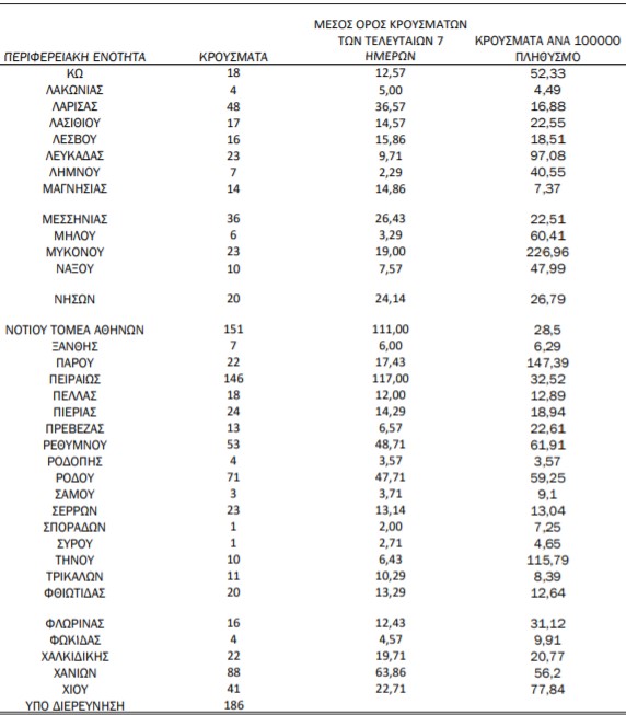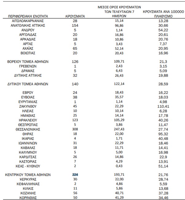 Ειδικότερα, η Αττική κατέγραψε 993 νέα περιστατικά Covid-19, με το κέντρο της Αθήνας να έχει 224 νέες μολύνσεις. Την ίδια ώρα η Θεσσαλονίκη έχει 308 νέα περιστατικά, με την Κρήτη να καταγράφει 281 (123 το Ηράκλειο, 17 το Λασίθι, 53 το Ρέθυμνο και 88 τα Χανιά).