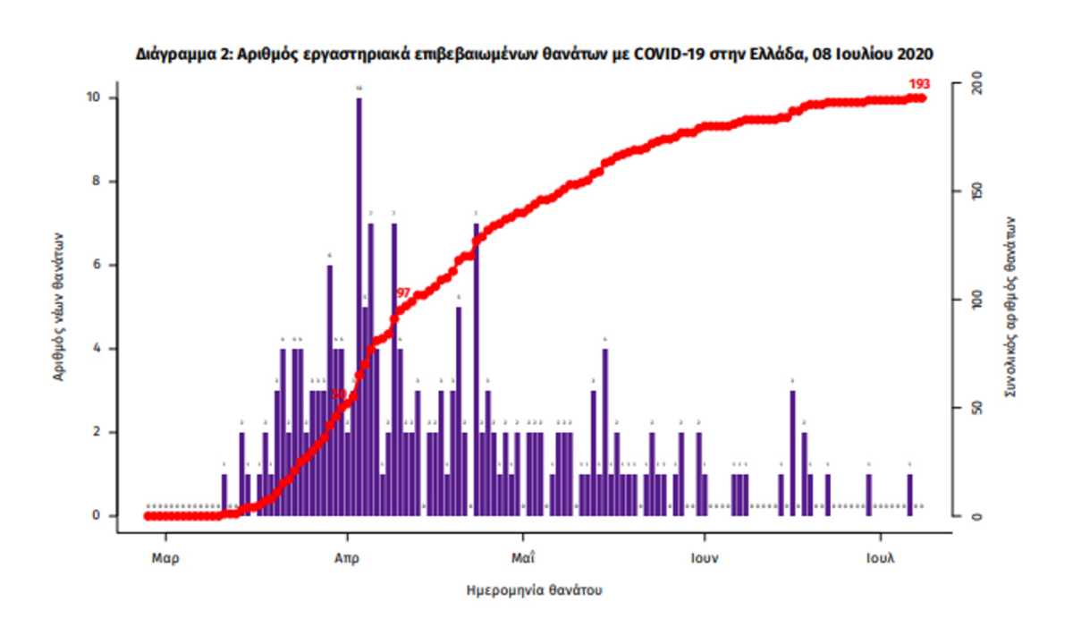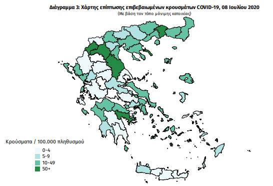 Τα στοιχεία που παρουσιάζονται αφορούν περιστατικά από την επιδημιολογική επιτήρηση της νόσου από τον νέο κορωνοϊό (COVID-19), με βάση τα δεδομένα που έχουν δηλωθεί στον ΕΟΔΥ και καταγραφεί μέχρι τις 08 Ιουλίου 2020 (ώρα 15:00).
