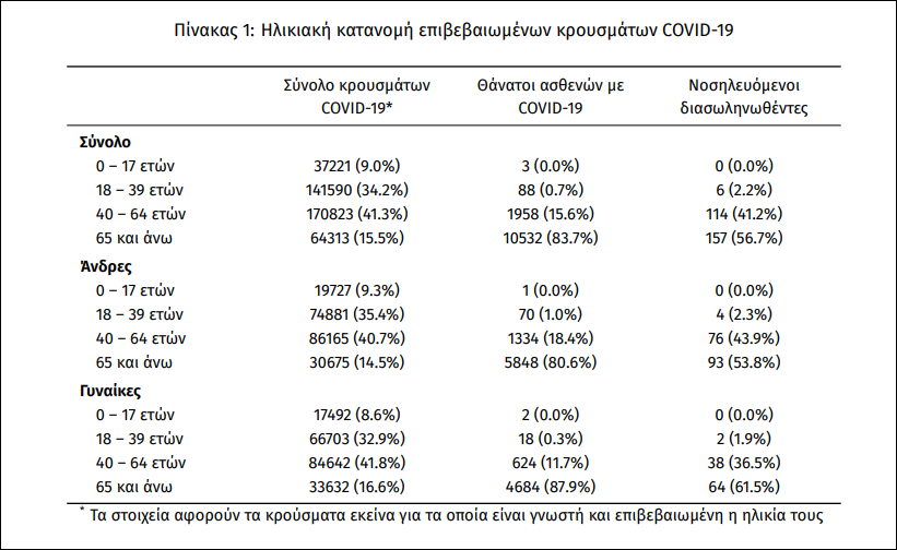 Ακολούθως παρουσιάζεται η ηλικιακή κατανομή των (α) συνολικών κρουσμάτων, (β) των περιστατικών που κατέληξαν σε θάνατο και (γ) των ασθενών που νοσηλεύονται διασωληνωμένοι: