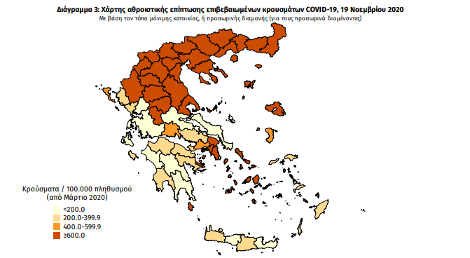 Ημερήσια έκθεση επιδημιολογικής επιτήρησης λοίμωξης από το νέο κορωνοϊό (COVID-19) – Δεδομένα έως 19/11/2020