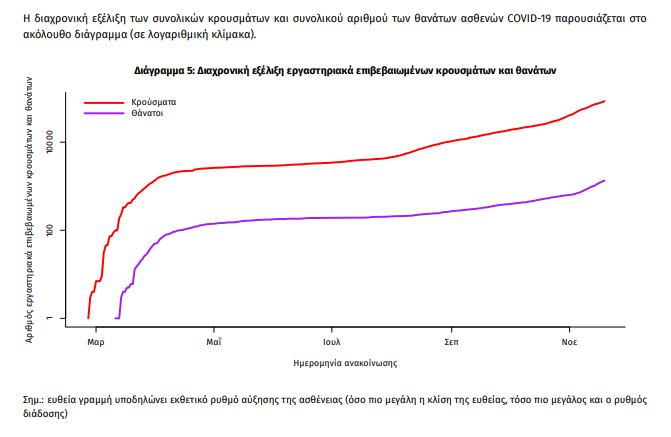 Χθες, Τετάρτη 18  Νοεμβρίου, οι διασωληνωμένοι ασθενείς ήταν 480 και οι θάνατοι που ανακοινώθηκαν για την ημέρα αυτή 60. Υπενθυμίζεται πως τα περισσότερα σε αριθμό κρούσματα που έχει καταγράψει ο ΕΟΔΥ σε μία ημέρα ανακοινώθηκαν την Πέμπτη 12 Νοεμβρίου, όταν εντοπίστηκαν 3.316 περιπτώσεις σε ένα 24ωρο. Επίσης, ο μεγαλύτερος αριθμός θανάτων εξαιτίας του ιού σε ένα 24ωρο καταγράφηκε την Κυριακή 15 Νοεμβρίου, όταν έχασαν τη ζωή τους 71 ασθενείς.