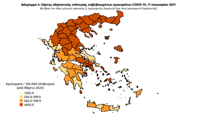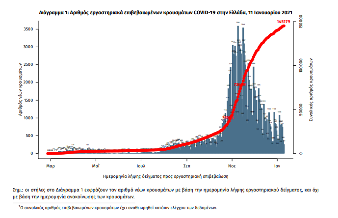 Ημερήσια έκθεση επιδημιολογικής επιτήρησης λοίμωξης από το νέο κορωνοϊό (COVID-19) – Δεδομένα έως 11/01/2021