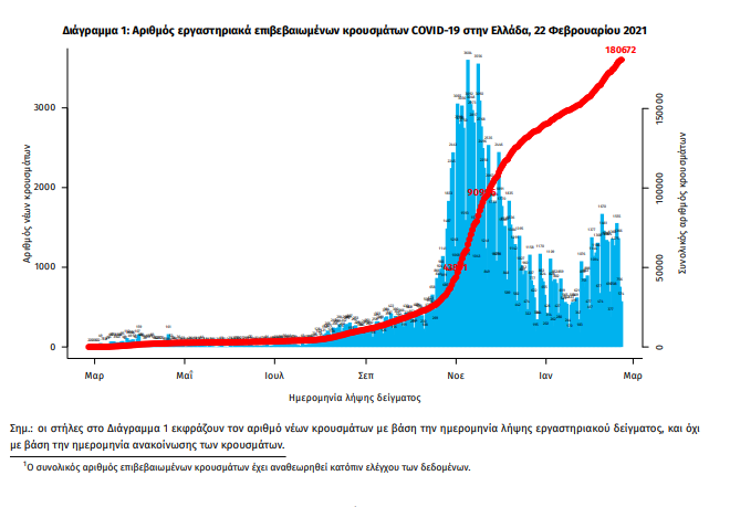 Αναλυτικά η ανακοίνωση του ΕΟΔΥ τη Δευτέρα 22 Φεβρουαρίου: