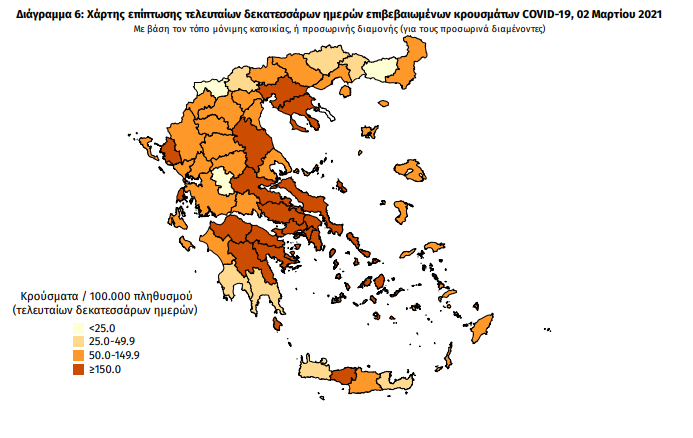 Αναλυτικά η ανακοίνωση του ΕΟΔΥ την Τρίτη 2 Μαρτίου: