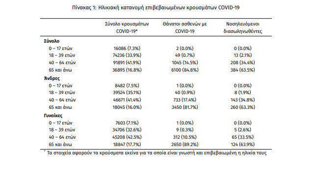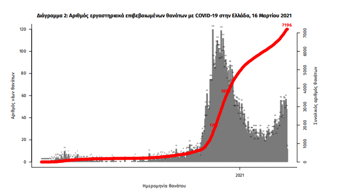 Οι νέοι θάνατοι ασθενών με COVID-19 είναι 59, ενώ από την έναρξη της επιδημίας έχουν καταγραφεί συνολικά 7.196 θάνατοι. Το 95.8% είχε υποκείμενο νόσημα ή/και ηλικία 70 ετών και άνω.