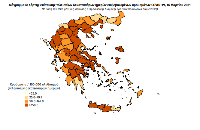 Αναλυτικά η ανακοίνωση του ΕΟΔΥ την Τρίτη 16 Μαρτίου: