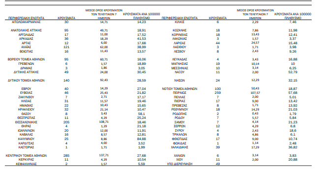 Οι νέοι θάνατοι ασθενών με COVID-19 είναι 22, ενώ από την έναρξη της επιδημίας έχουν καταγραφεί συνολικά 6.343 θάνατοι. Το 95.7% είχε υποκείμενο νόσημα ή/και ηλικία 70 ετών και άνω.