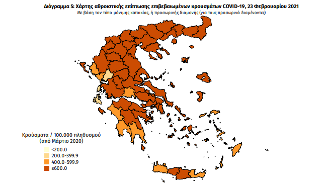 Αναλυτικά η ανακοίνωση του ΕΟΔΥ την Τρίτη 23 Φεβρουαρίου: