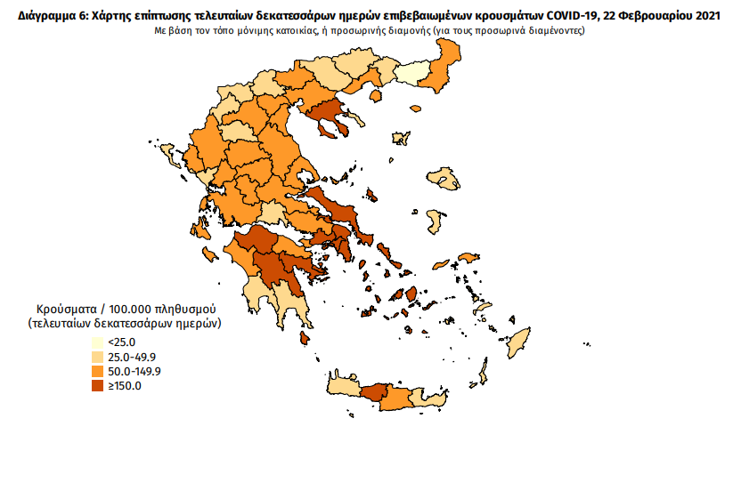 Αναλυτικά η ανακοίνωση του ΕΟΔΥ τη Δευτέρα 22 Φεβρουαρίου:
