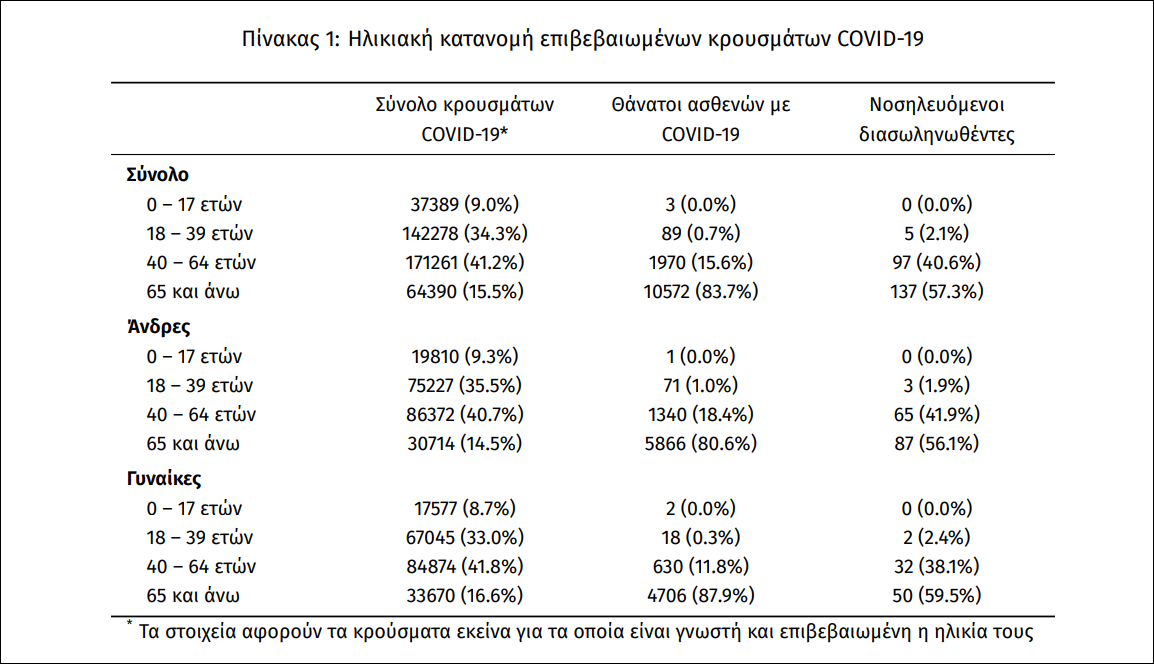 Ακολούθως παρουσιάζεται η ηλικιακή κατανομή των (α) συνολικών κρουσμάτων, (β) των περιστατικών που κατέληξαν σε θάνατο και (γ) των ασθενών που νοσηλεύονται διασωληνωμένοι: