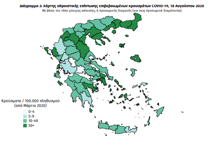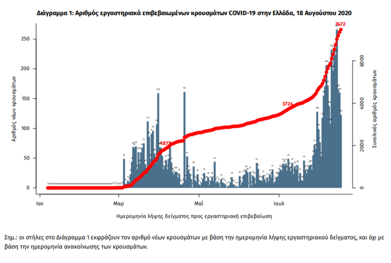 Τα στοιχεία που παρουσιάζονται αφορούν περιστατικά από την επιδημιολογική επιτήρηση της νόσου από το νέο κορωνοϊό (COVID19), με βάση τα δεδομένα που έχουν δηλωθεί στον ΕΟΔΥ και καταγραφεί μέχρι τις 18 Αυγούστου 2020 (ώρα 15:00).