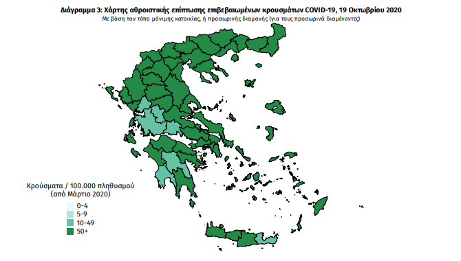 Ημερήσια έκθεση επιδημιολογικής επιτήρησης λοίμωξης από το νέο κορωνοϊό (COVID-19) – Δεδομένα έως 19/10/2020