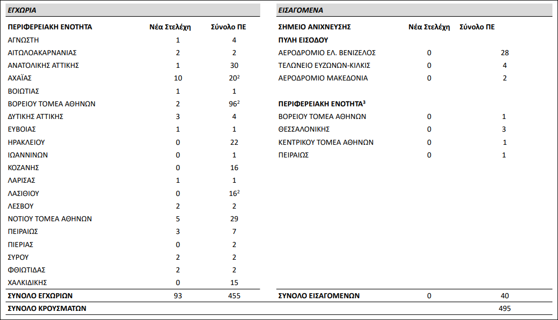 Σημ.2: Περιλαμβάνονται και κρούσματα που ανήκουν σε γνωστές συρροές