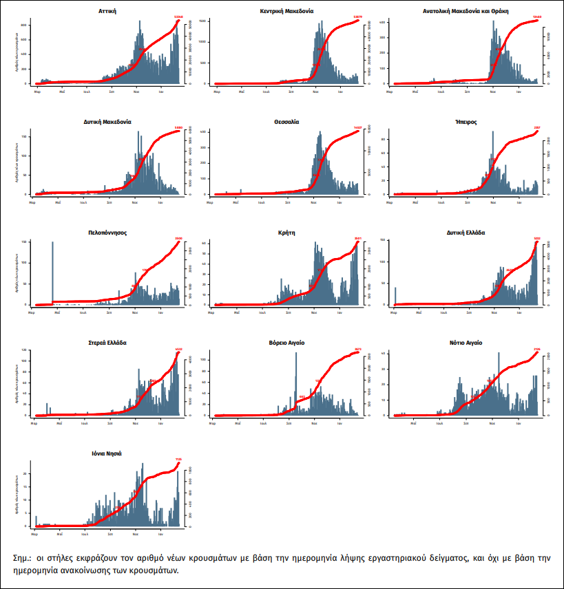 Σημ.1: Το νέο σύνολο έχει προκύψει κατόπιν της αφαίρεσης των δειγμάτων που αφορούσαν επανελέγχους, μετά από την επιδημιολογική διερεύνηση των κρουσμάτων.