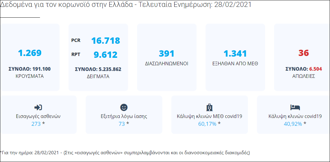 Δεδομένα έως 01 Μαρτίου 2021, ώρα 15:00