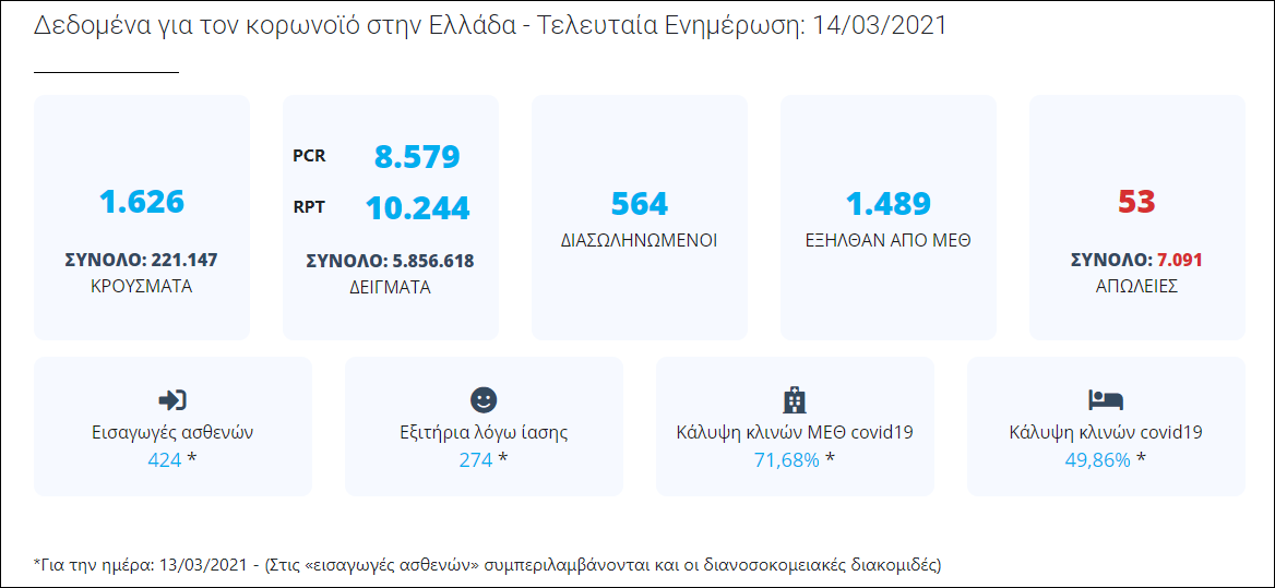 Δεδομένα έως 14 Μαρτίου 2021, ώρα 15:00