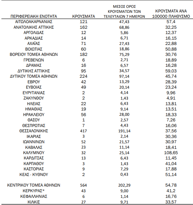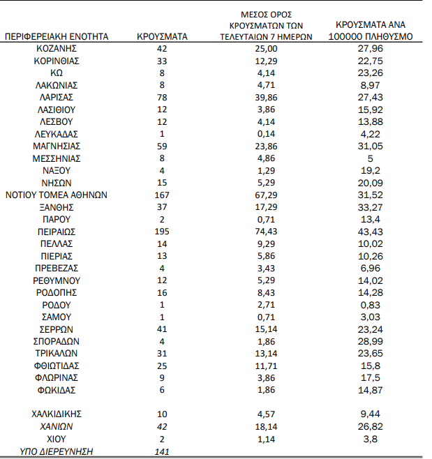 *Περιλαμβάνονται κρούσματα προηγούμενου χρονικού διαστήματος λόγω καθυστερημένης δήλωσης στο Μητρώο Covid-19