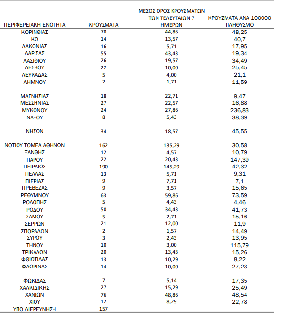 Δείτε αναλυτικά την κατανομή των περιστατικών Covid: