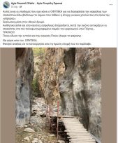 «Αυτές είναι οι υποδομές που έχει κάνει ο ΟΦΥΠΕΚΑ για να διασφαλίσει την ασφάλεια των επισκεπτών. Εδώ βλέπουμε το σημείο που πέθανε η άτυχη γυναίκα χτυπώντας στα ξύλα της «γέφυρας».