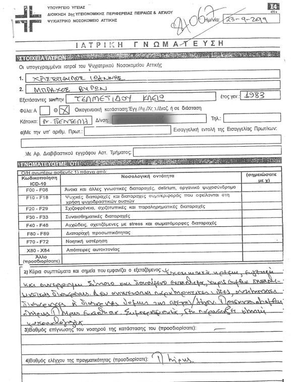 Δείτε το έγγραφο της ψυχιατρικής γνωμάτευσης: