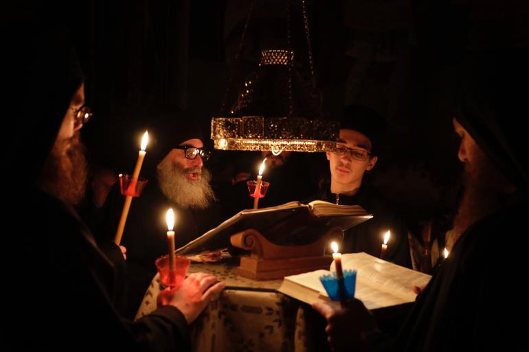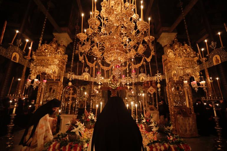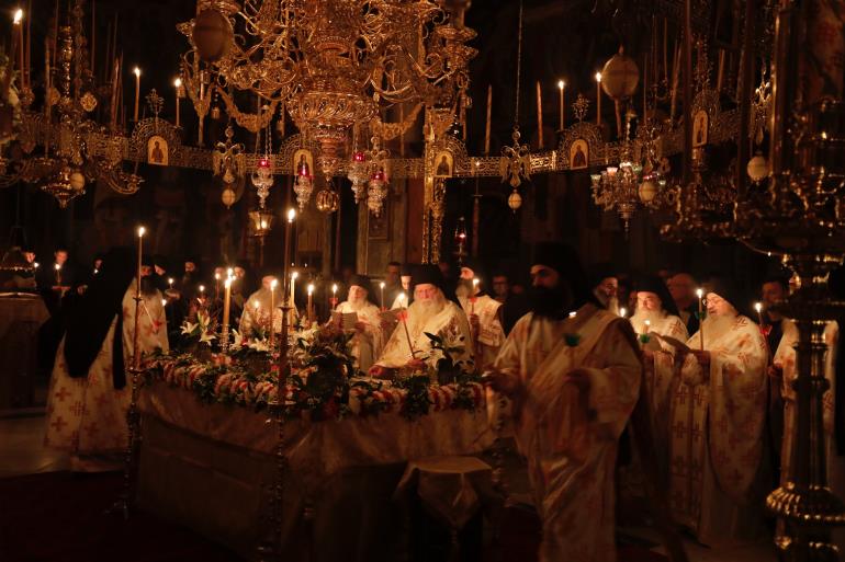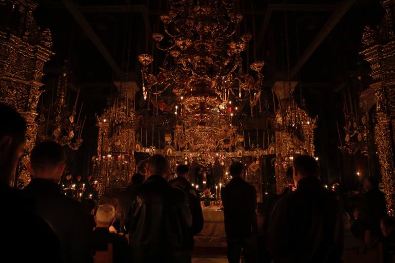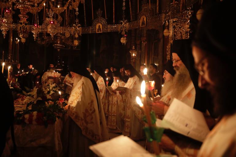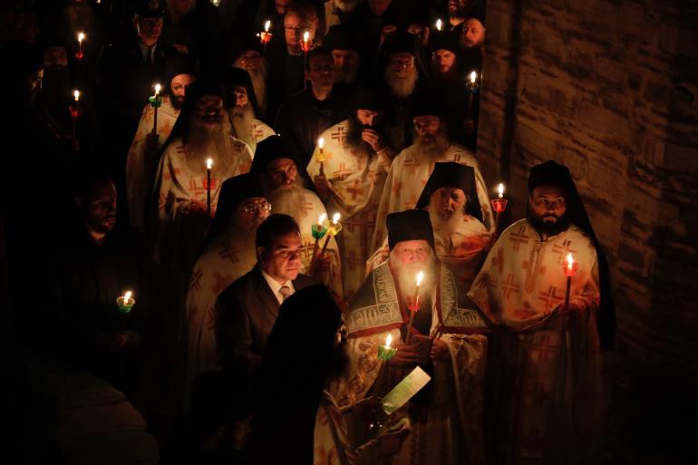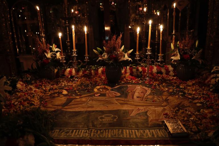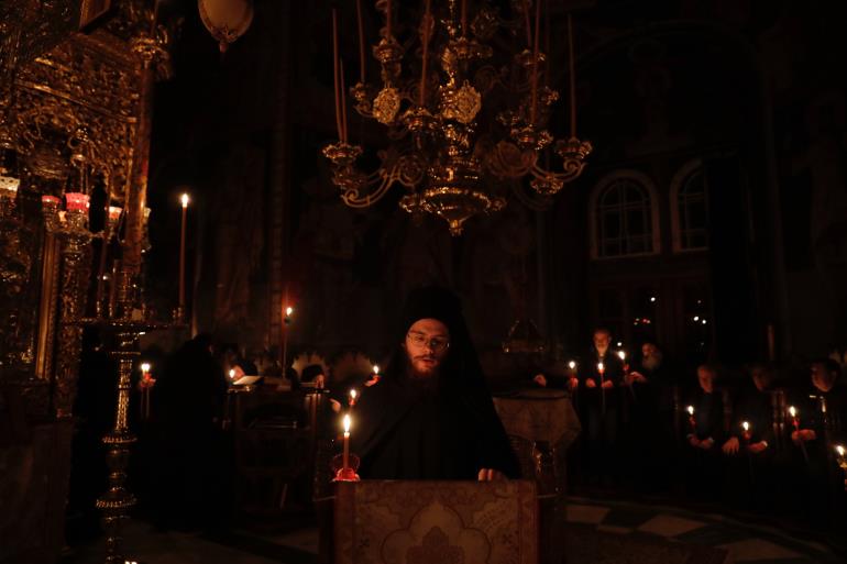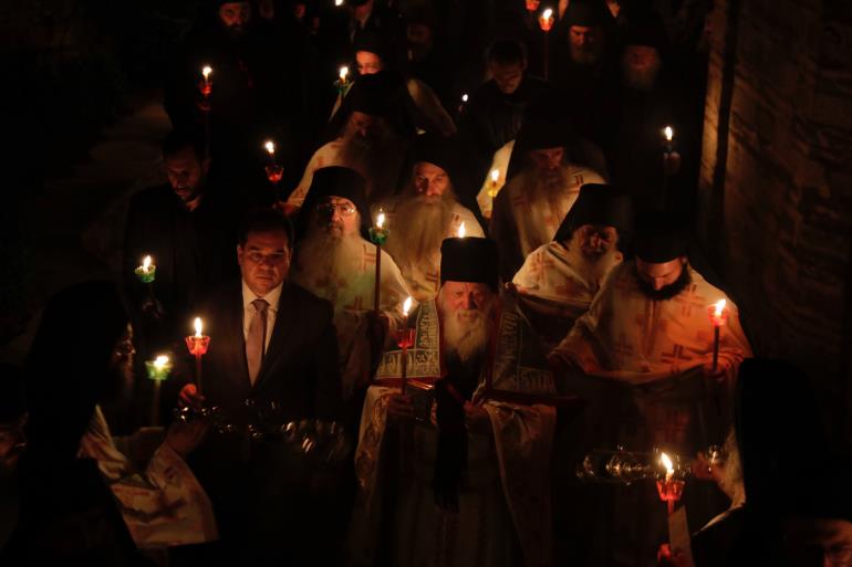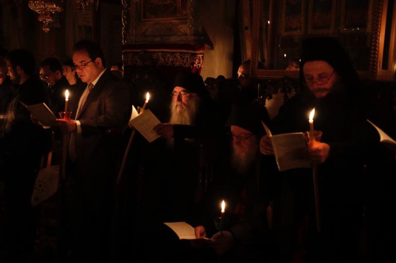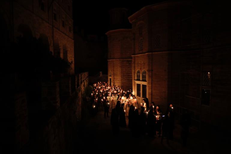 Υπό το φως των κεριών, οι χοροί των ψαλτών και το τελετουργικό, που παραμένει αμετάβλητο αιώνες τώρα, δημιουργήσαν κατανυκτική ατμόσφαιρα για τους χιλιάδες προσκυνητες ,από κάθε γωνιά της γης, που έχουν κατακλύσει και φέτος τα μοναστήρια και τα κελιά για να συνεορτάσουν με τους πατέρες αυτές τις ημέρες.