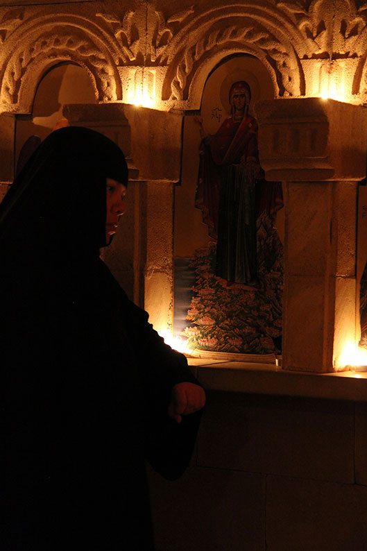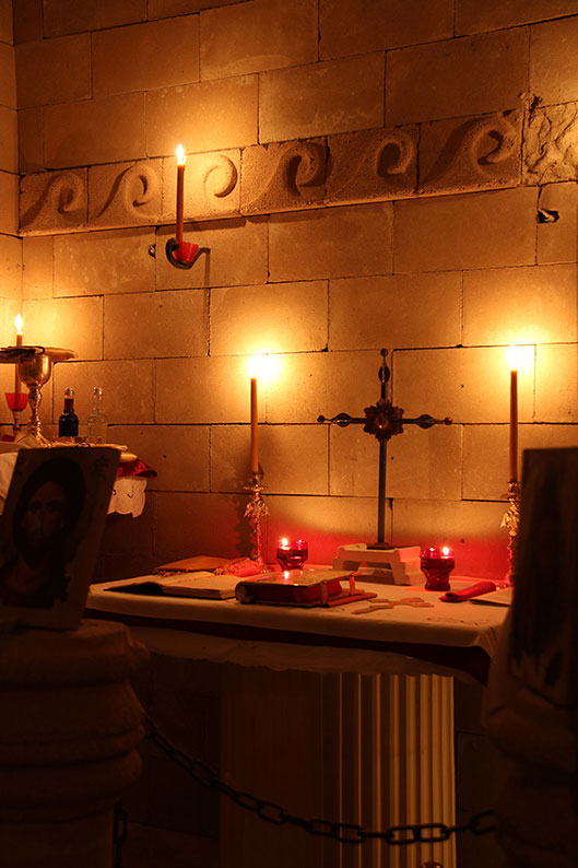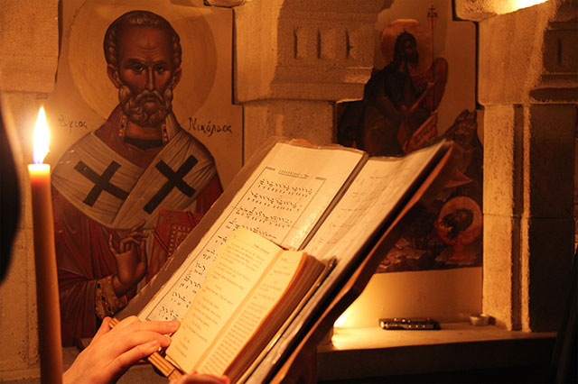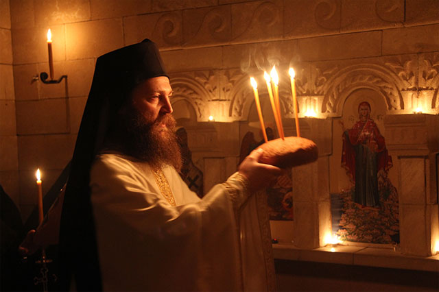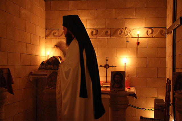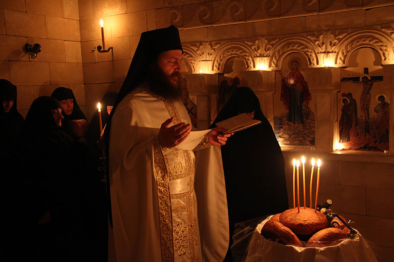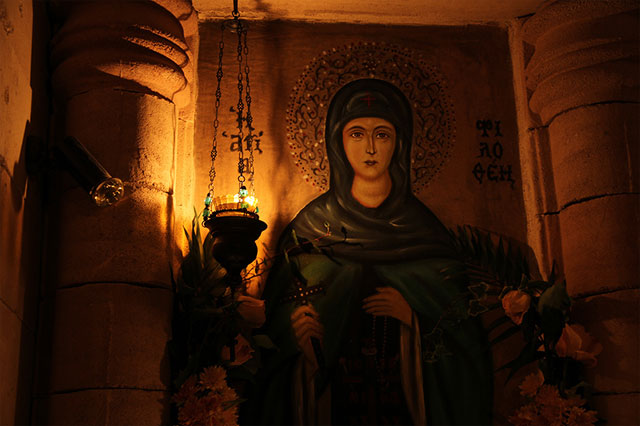 Η κατανυκτική Θεία Λειτουργία καθώς και οι ακολουθίες του Εσπερινού και του Όρθρου, τελέστηκαν μέσα στις κατακόμβες της Ιεράς Μονής, όπου βρίσκεται το Παρεκκλήσιο της Αγίας Φιλοθέης της Αθηναίας.