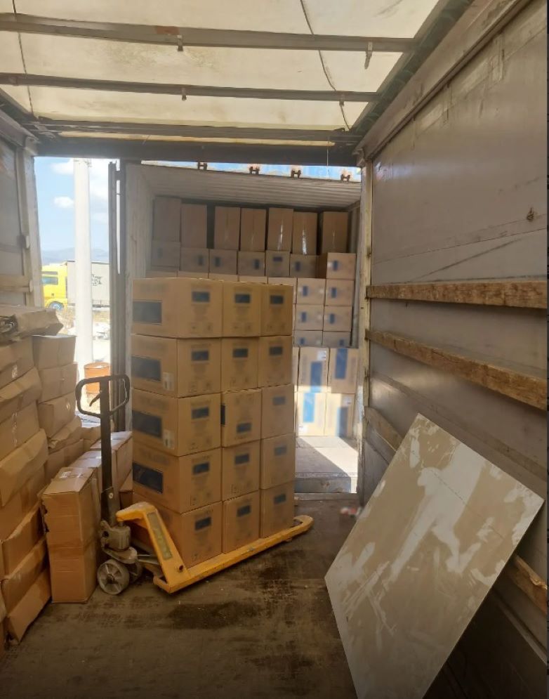 Συνολικά εντός του επικαθήμενου ρυμουλκούμενου, αποθήκης και γραφείου στο υπαίθριο οικόπεδο, βρέθηκαν και κατασχέθηκαν -644.500- πακέτα τσιγάρων (συνολικά -12.890.000- τεμάχια), τα οποία δεν έφεραν την ειδική ταινία φόρου κατανάλωσης και δεν είχαν καταβληθεί οι νόμιμοι φόροι και δασμοί καθώς και αυτοσχέδια νάιλον συσκευασία περιέχουσα κομμένο καπνό βάρους -515- γραμμαρίων.