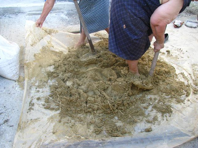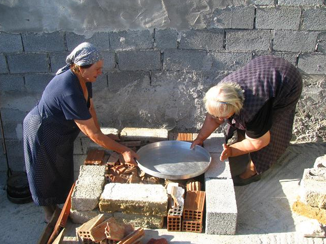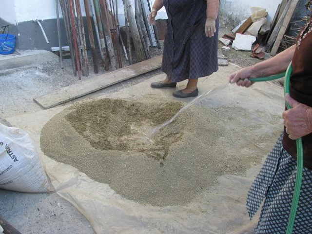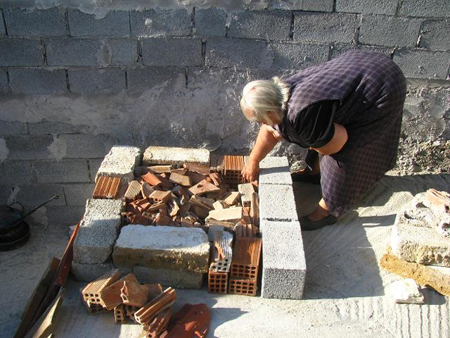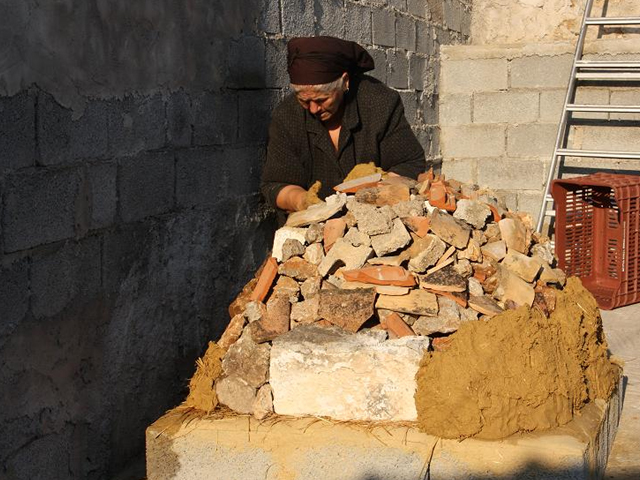 Στο κτίσιμο του φούρνου παίρνουν μέρος οι γυναίκες και οι άνδρες περιορίζονται μόνο στη μεταφορά των υλικών.