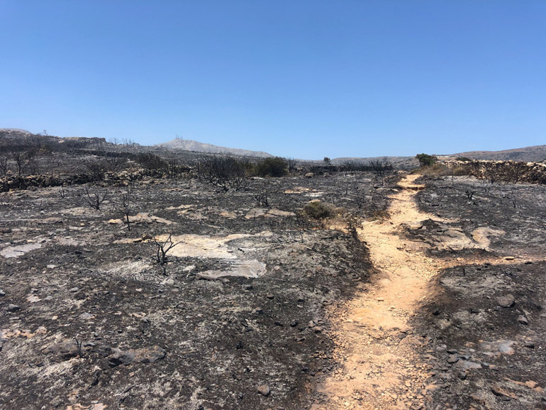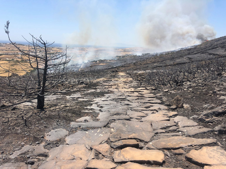 Η μεγάλη πυρκαγιά που μαίνεται στο νησί της Πάρου, κατέστρεψε και μεγάλο μέρος του γνωστού βυζαντινού μονοπατιού. Δείτε τις σχετικές φωτογραφίες που δημοσιεύτηκαν στα κοινωνικά δίκτυα: