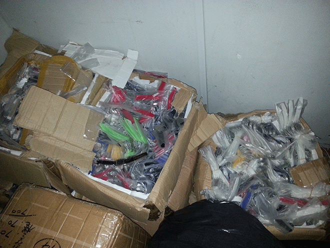 Ειδικότερα, στους χώρους της αποθήκης βρέθηκαν και κατασχέθηκαν πάνω από 145.000 τεμάχια απομιμητικών προϊόντων γνωστών εμπορικών οίκων του εξωτερικού, όπως γυαλιά ηλίου, ρολόγια και υποδήματα.